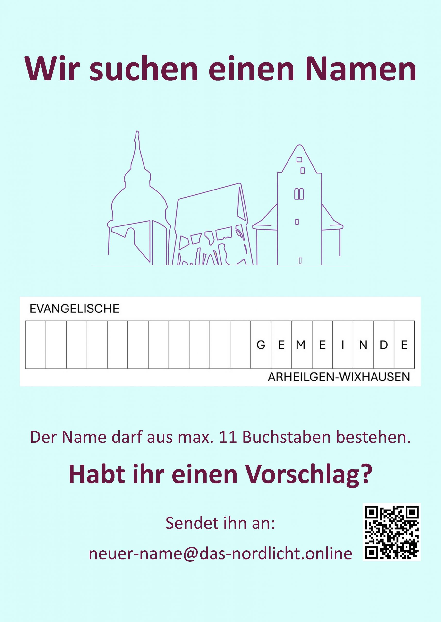 Die Kirchenvorstände der drei Gemeinden in Arheilgen und Wixhausen bitten um Vorschläge, wie unsere künftige gemeinsame Kirchengemeinde heißen soll: